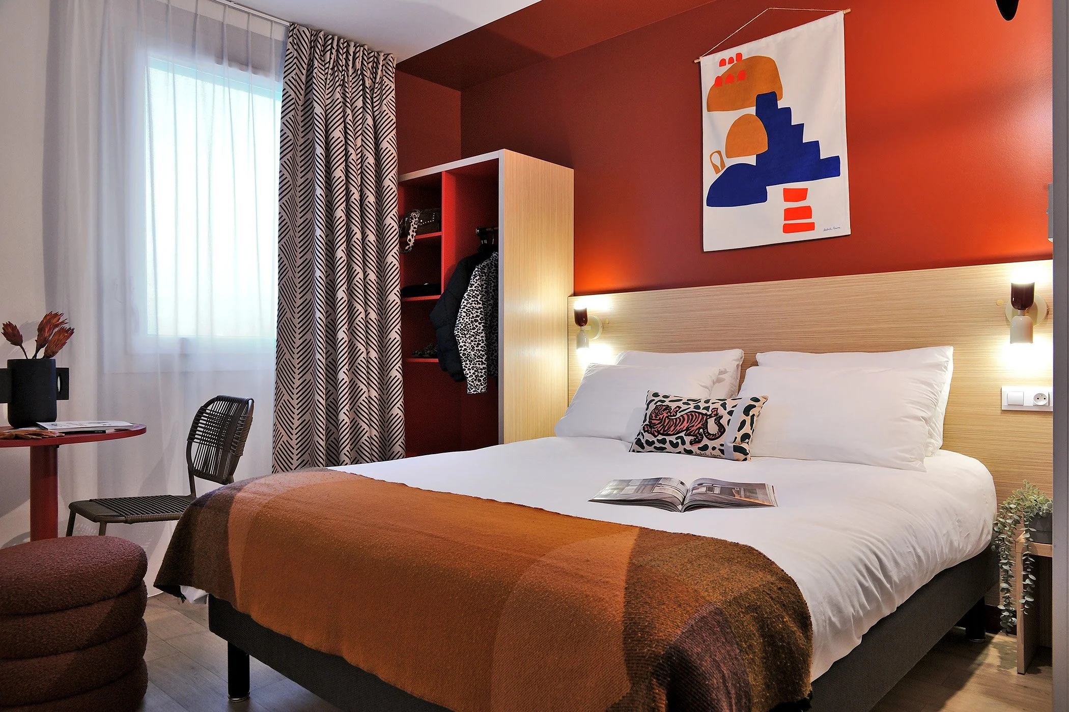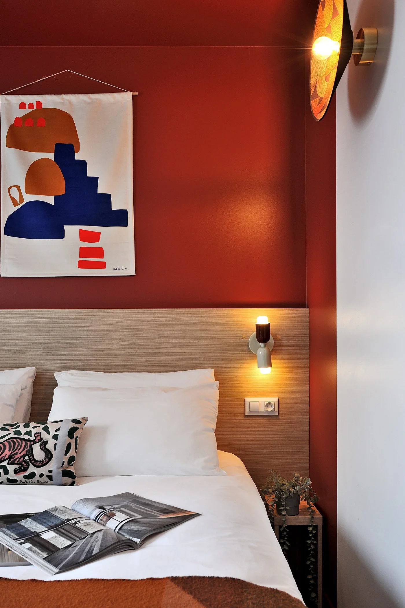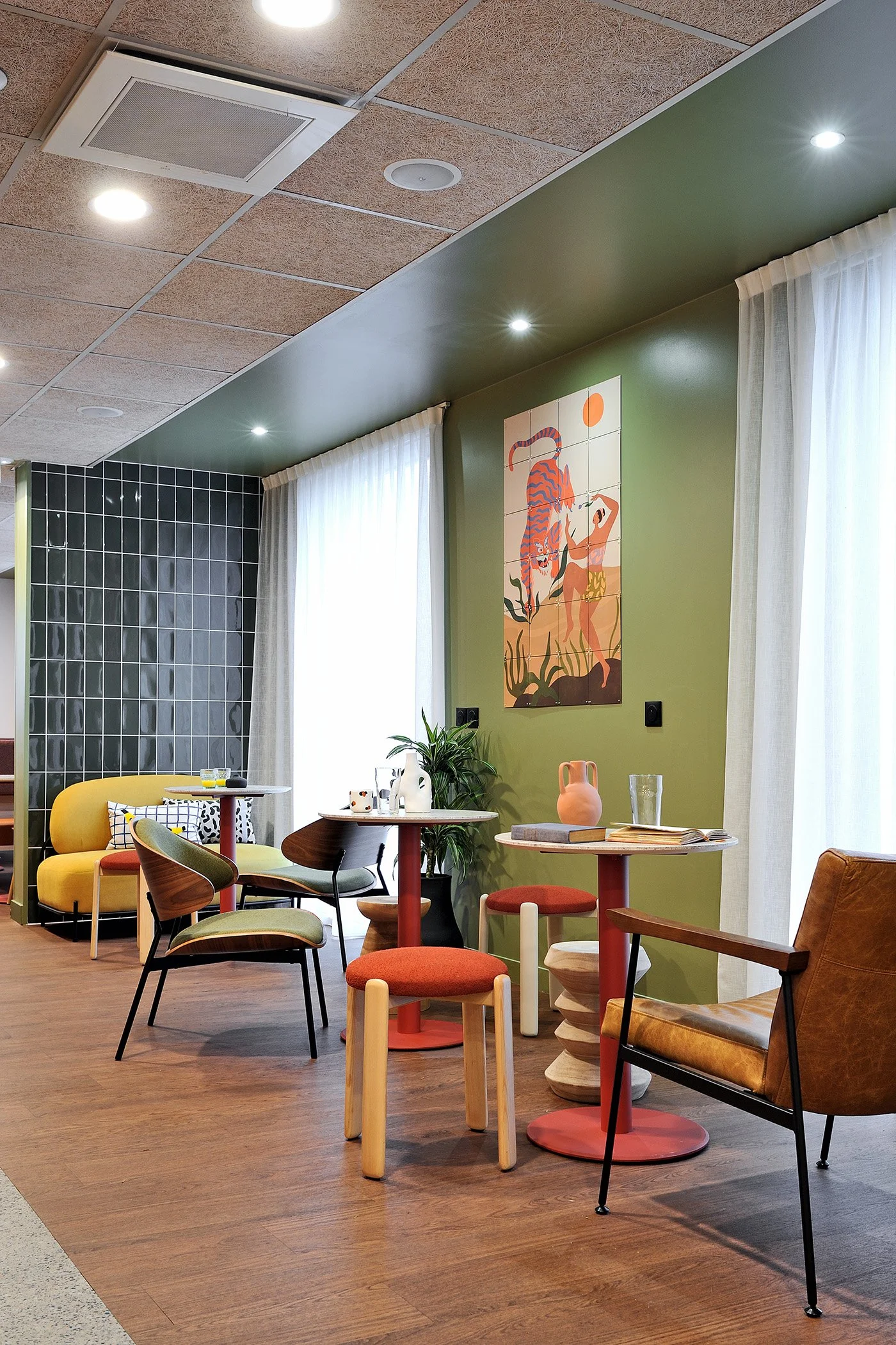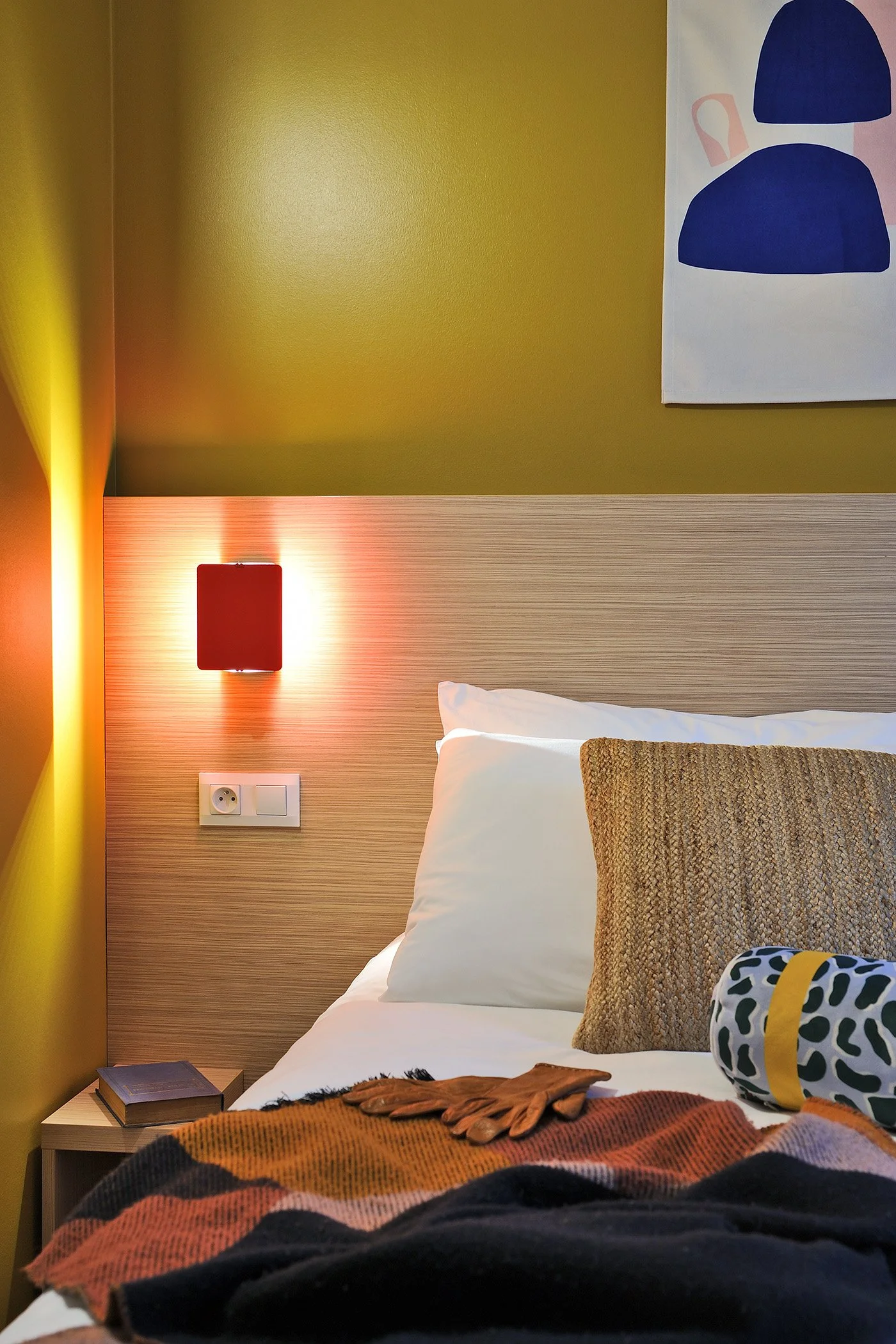 Le thème ethnique a été décliné dans de multiples dimensions en déployant une palette de couleurs chatoyantes, que l’on retrouve dans tous les espaces. Des papiers peints audacieux et des formes impactantes complètent l’univers de cet hôtel afin de proposer une hospitalité originale et décalée.