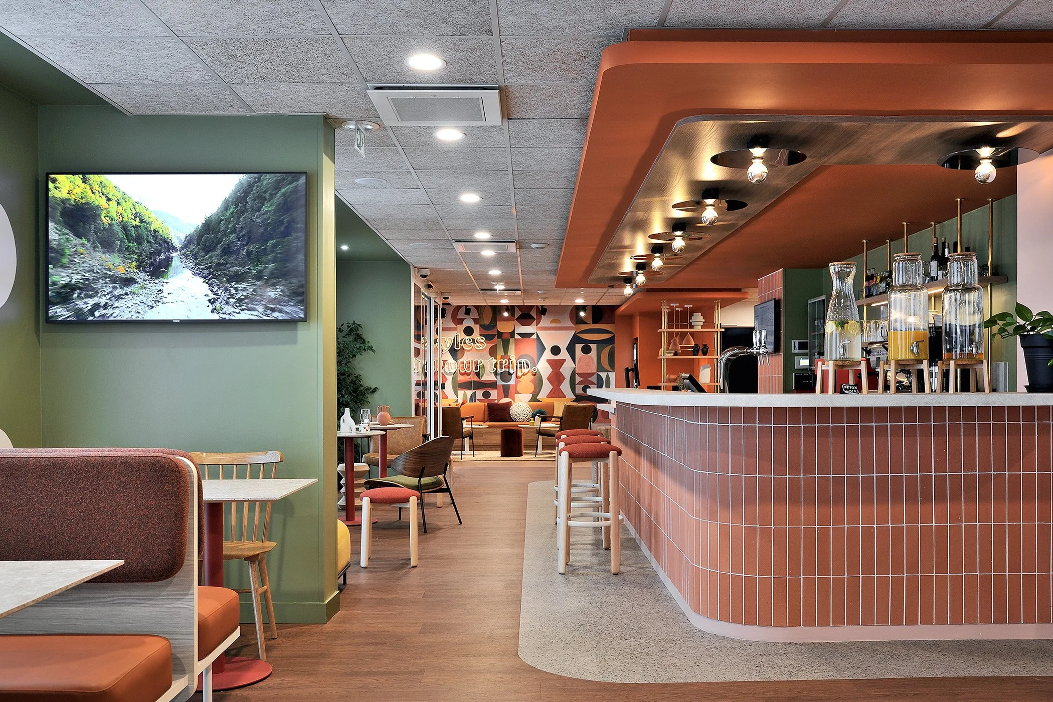 Véritable croisement de cultures et de voyageurs, cet hôtel Ibis Styles se situe aux portes de l’aéroport de Genève, à la frontière franco-suisse. Le projet de rénovation vise à offrir un cadre contemporain et dépaysant tout en restant chaleureux et immersif.